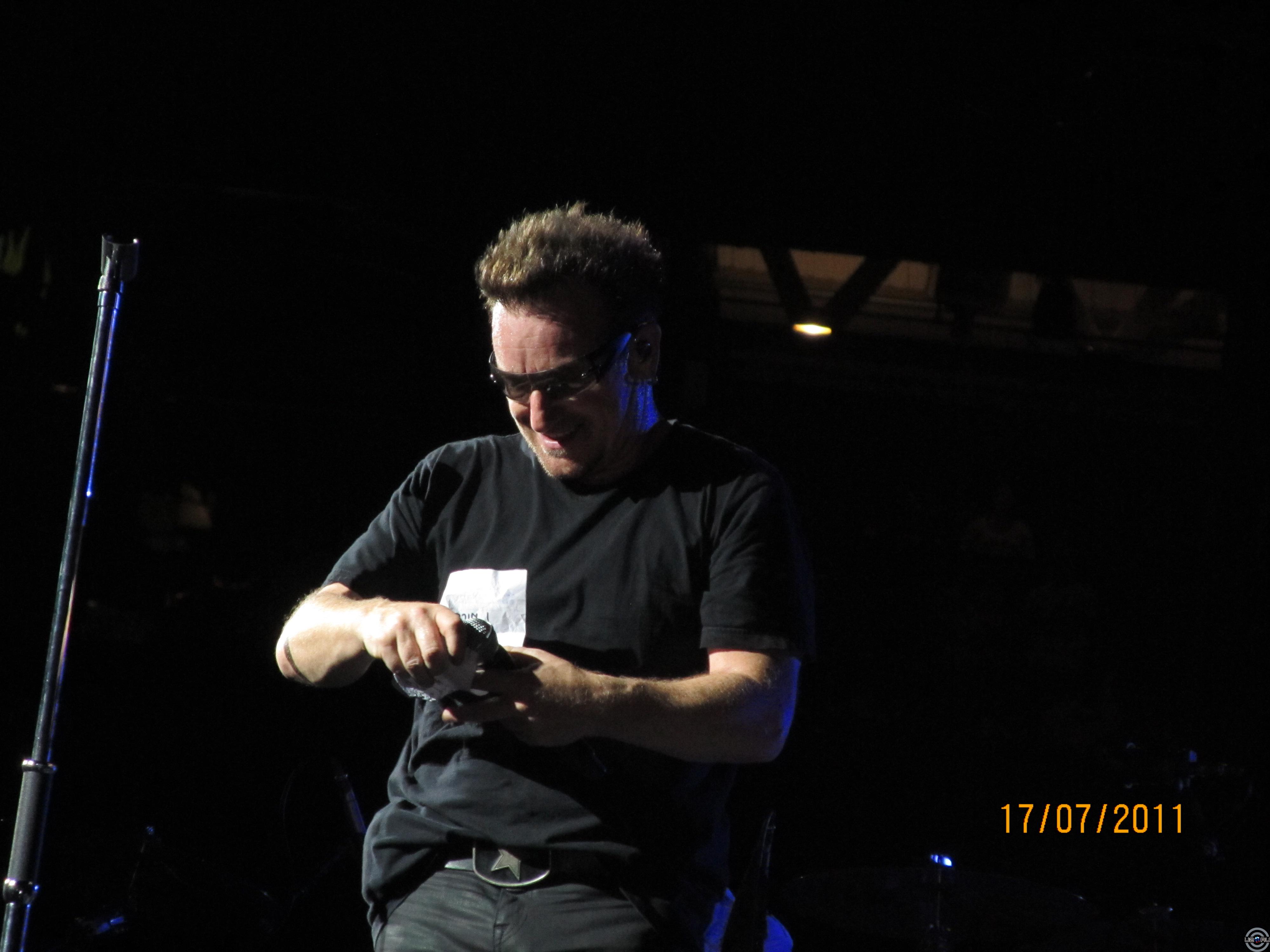 Боно читает сет-лист концерта 30-ти летней давности