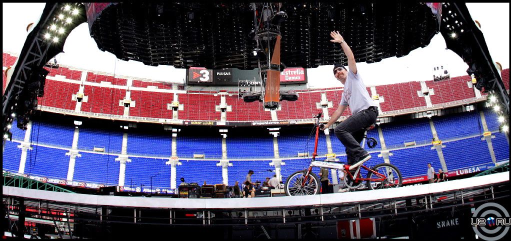 На концерте это врядли. С гитарой на велосипед как-то неудобно