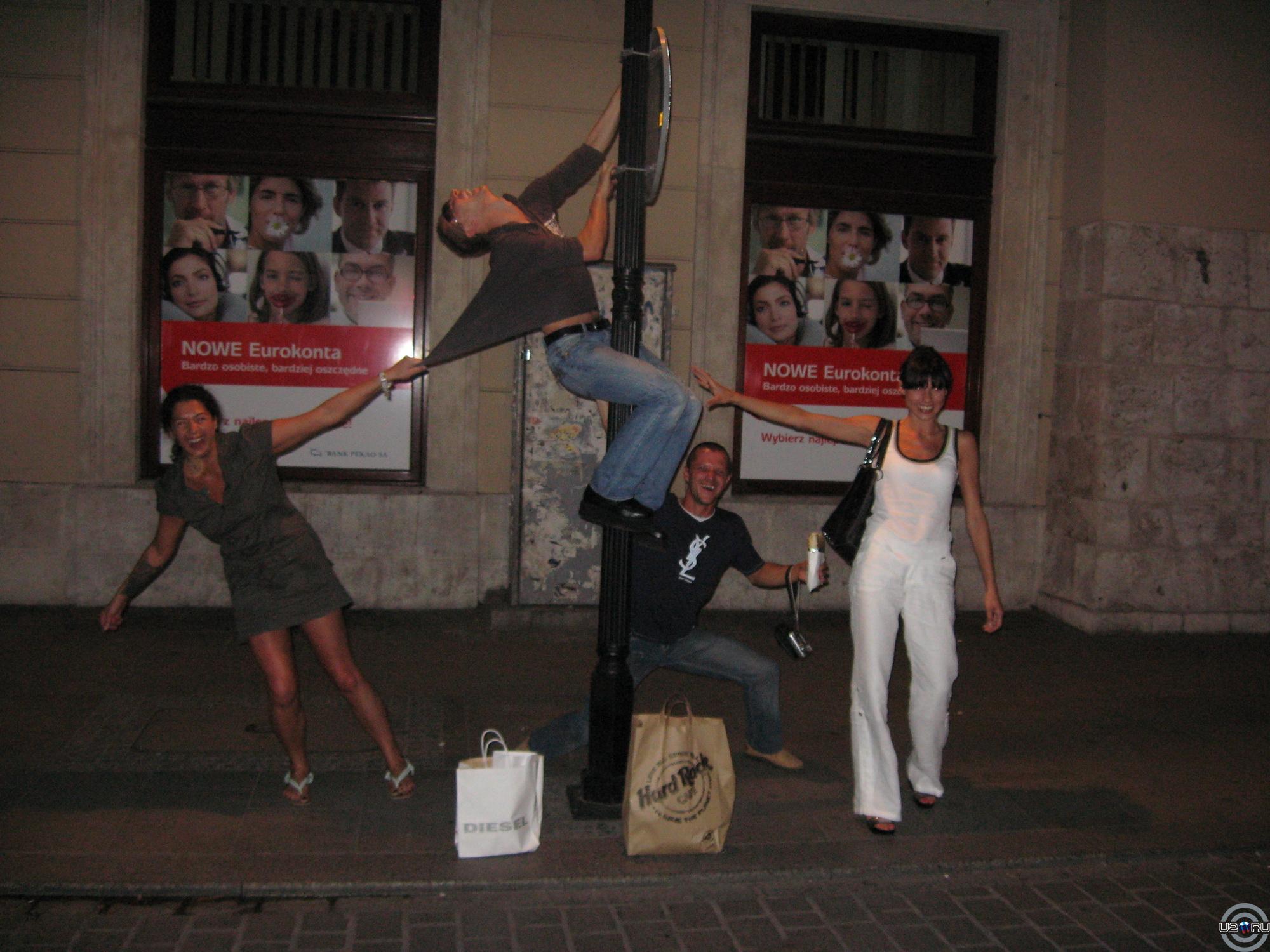 Все это было сделано спонтанно, как и большинство фоток в Кракове...., эта ,например, напротив входа в джаз клуб, но уже после выхода нас оттуда. Мы весь вечер и пол ночи жгли, у меня даже живот болел от смеха. И этот клуб был не последним местом нашего посищения, а да мы потом и на какой то памятник полезли, и открытые пивнушки переобходили, потом в такси чудили, и как обычно заканчивали в отеле.