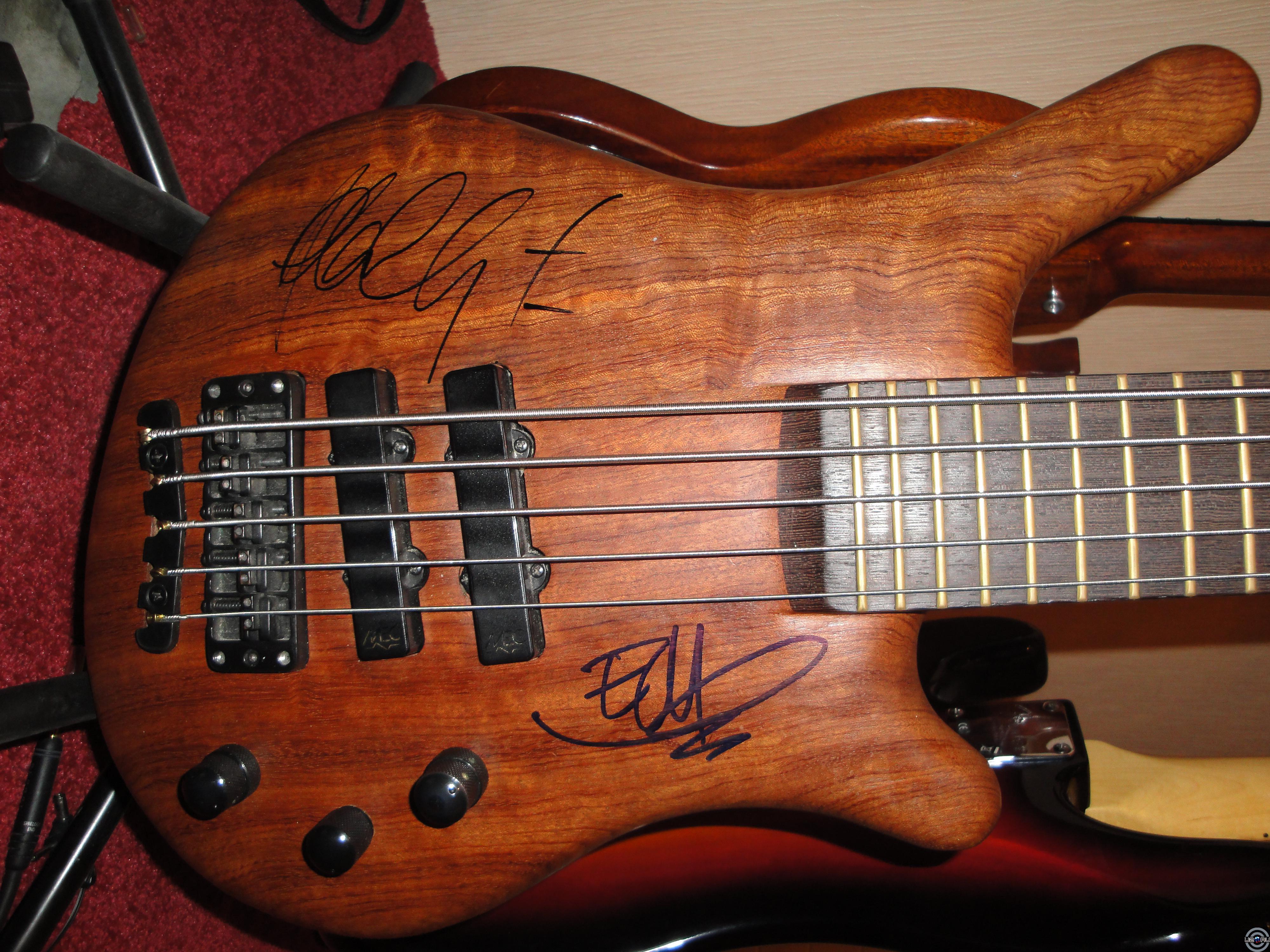 Реально не расписываются. Повезло просто. Боно сказал типа "I'm not sign guitar, man", и подписал фотокарточку из альбома переиздания JT. Телохранитель Эджа подошел ко мне и жестом показал убери, но Эдж как то сам взял и подписал, не ожидал. Ну а Адам почти сразу как бас увидел подошел) Видимо сильно уважает Адам басы да еще и ворвиковские)
