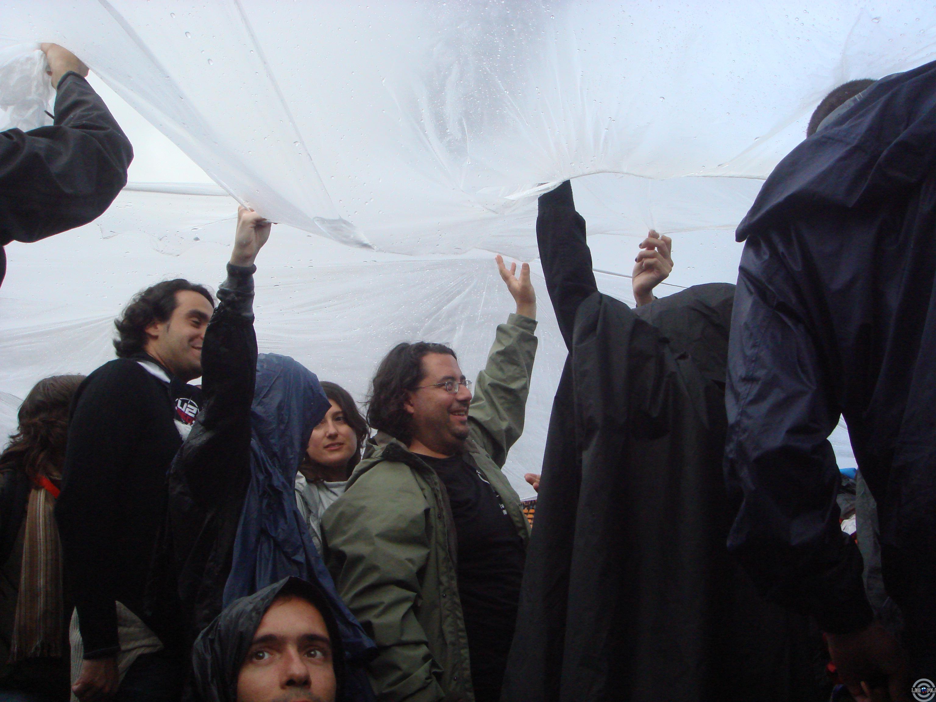 Ага,как начинало капать все дружно натягивали баааальшой аля-дождевик\полиэтилен. Чтобы хотя бы встретить группу сухими)