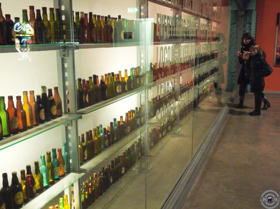 Первый этаж и множество разнообразных бутылок из-под пива Гиннесс