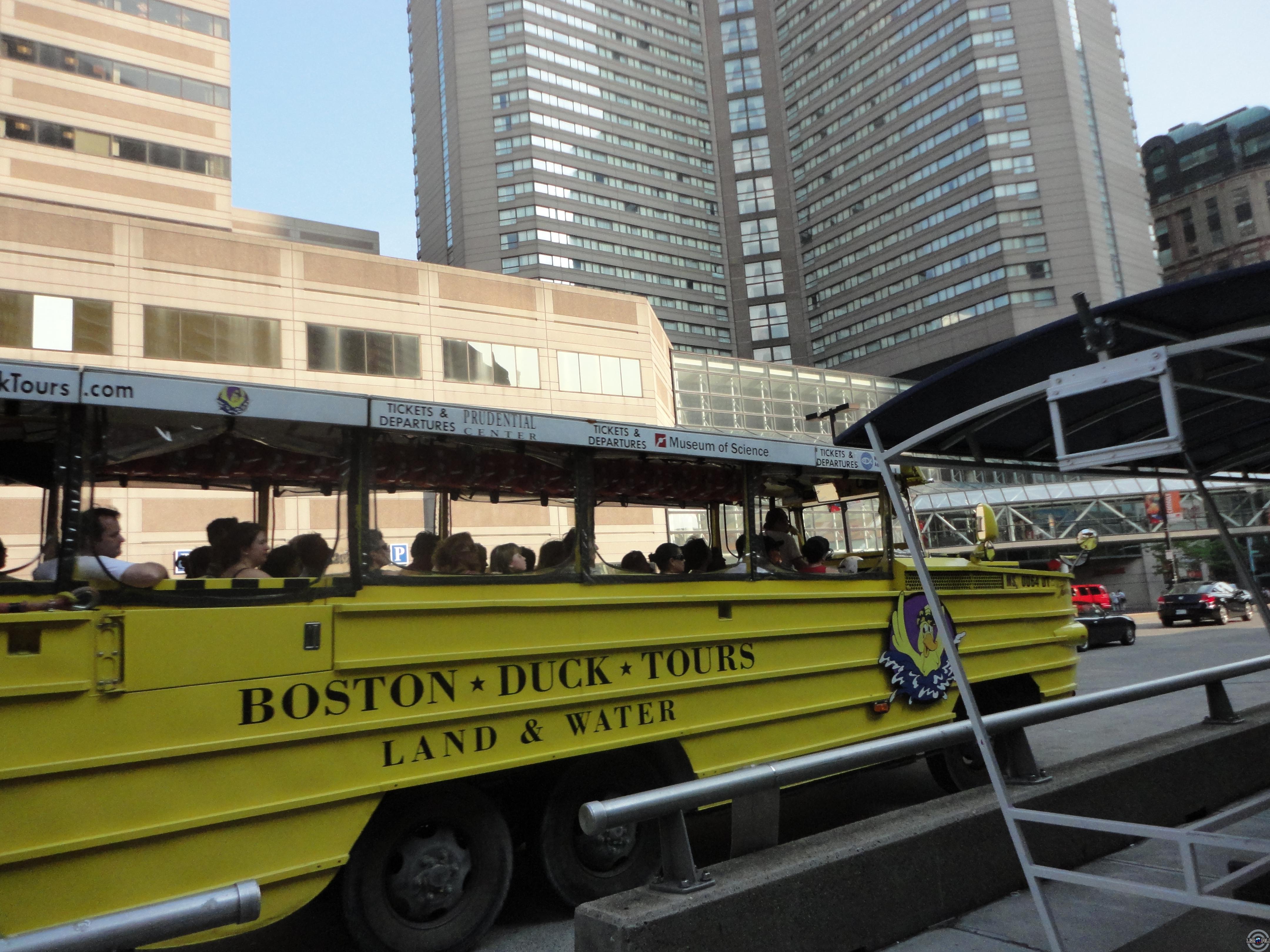 Автобус-амфибия - едет-едет, а потом бац - сплавляется в воду и плывет!